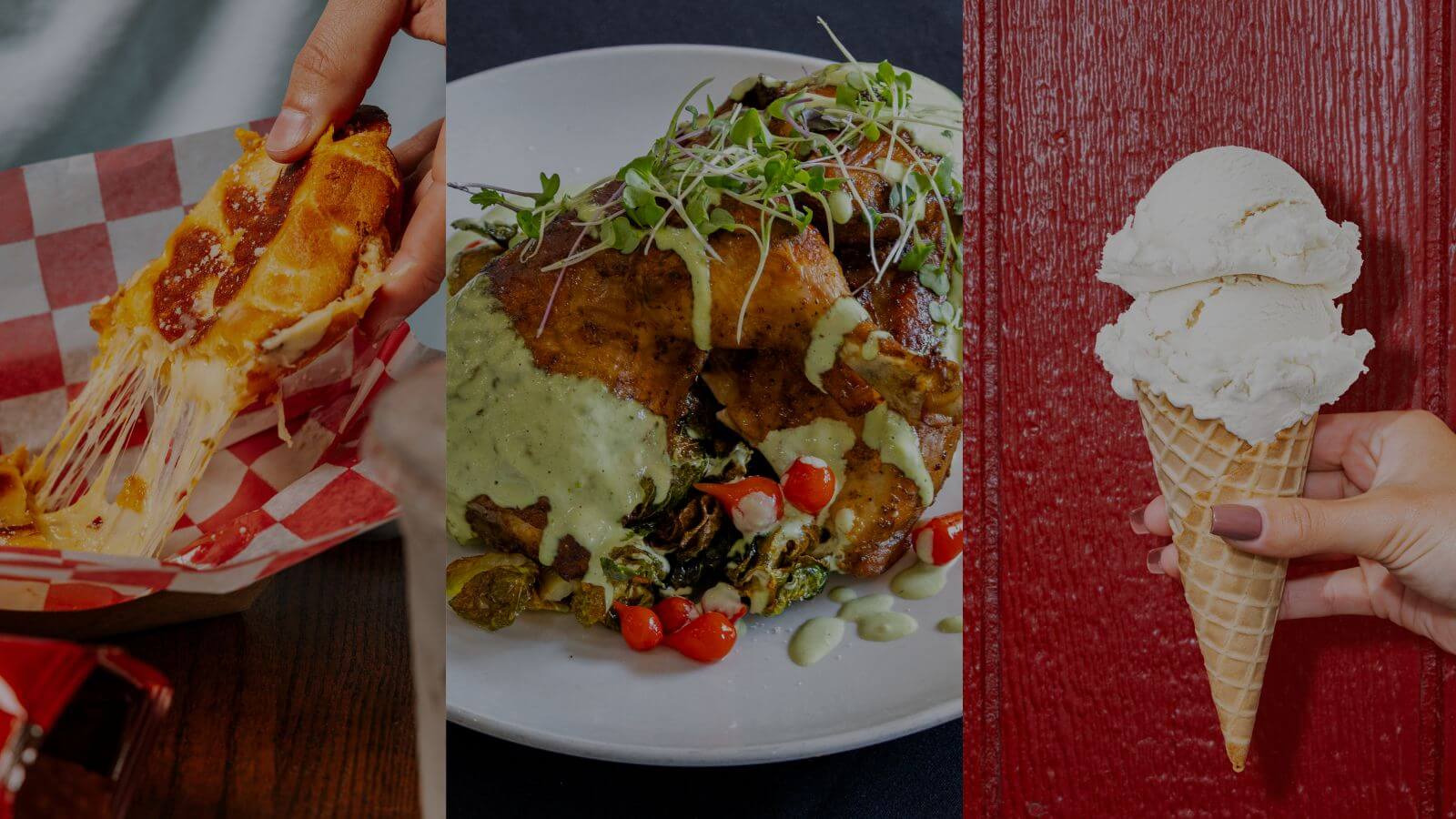 Reservations are recommended for dinner at The Farmhouse Restaurant. The Dairycatessen features pre-made food ready when you walk in, including hot sandwiches, salads, soups, deli items, fried chicken, hot dogs, smashburgers, Fair Oaks Farms cheese, and ice cream. It’s designed for a quick and easy stop. The Red Barn Milk Bar offers a mix of pre-made items and made-to-order favorites like ice cream and milkshakes. You can order grilled cheese at the walk-up window when you arrive.